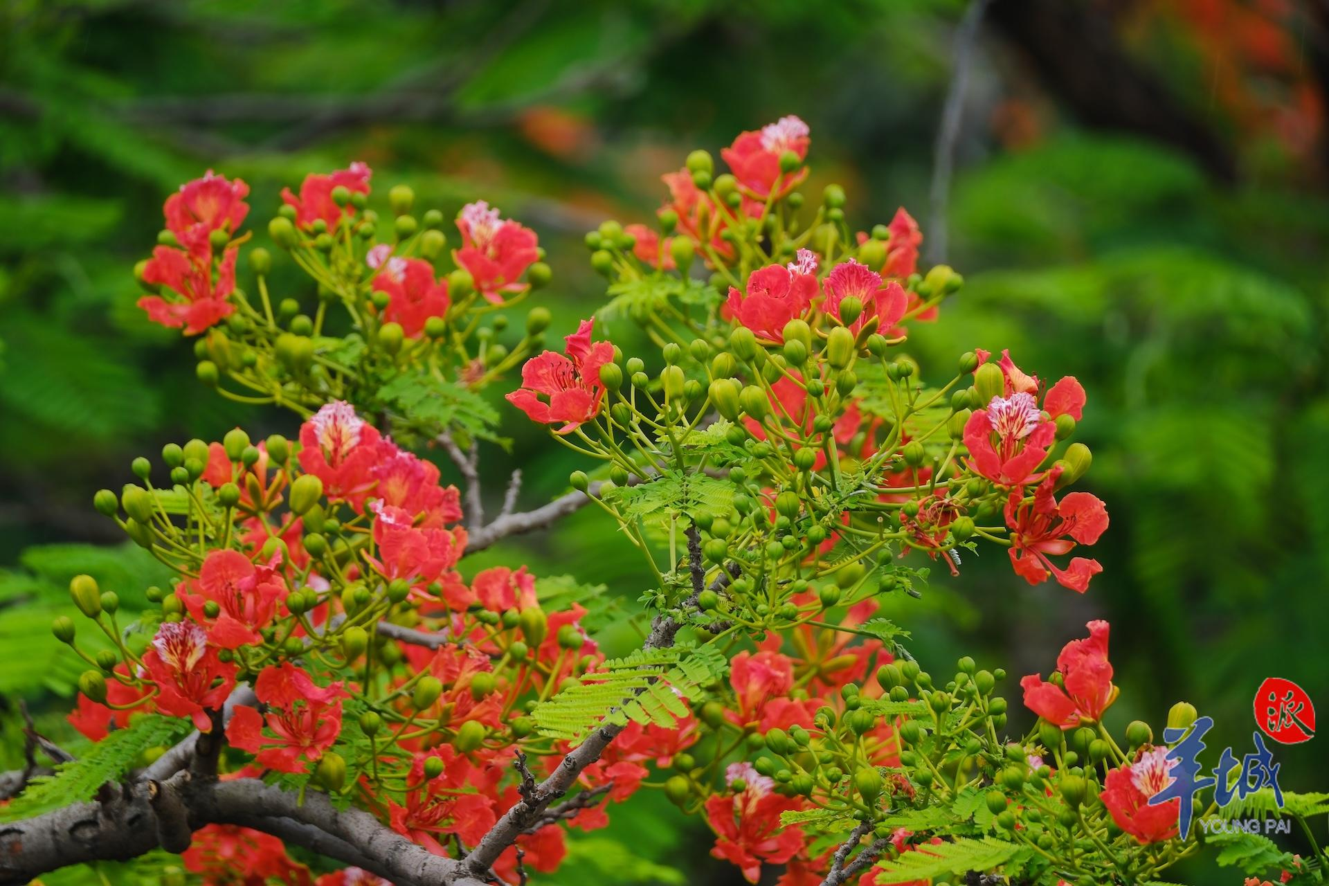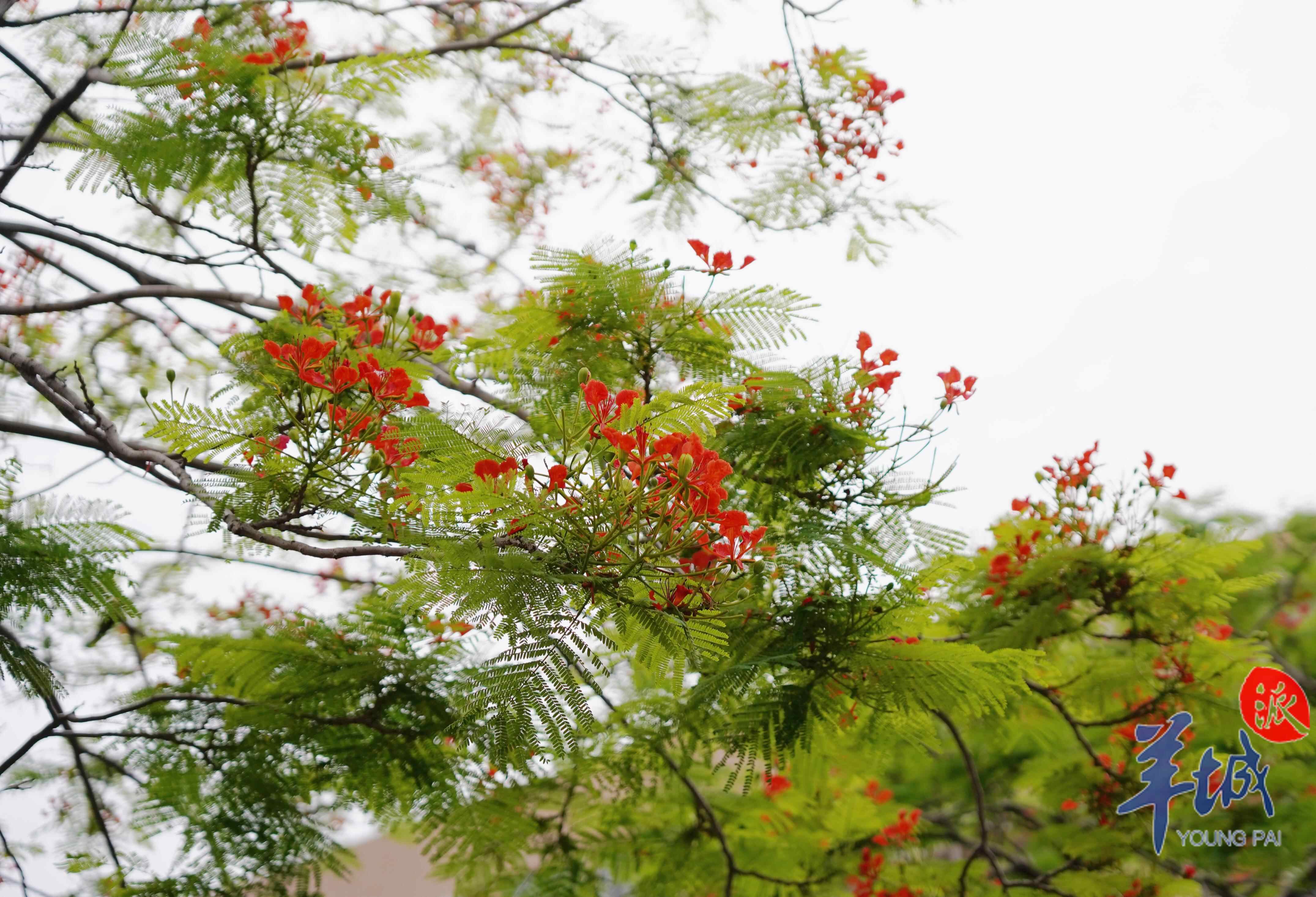 今年的凤凰花特别繁茂,街头一树树浅绿衬火红,最适宜在这样日子去观赏。