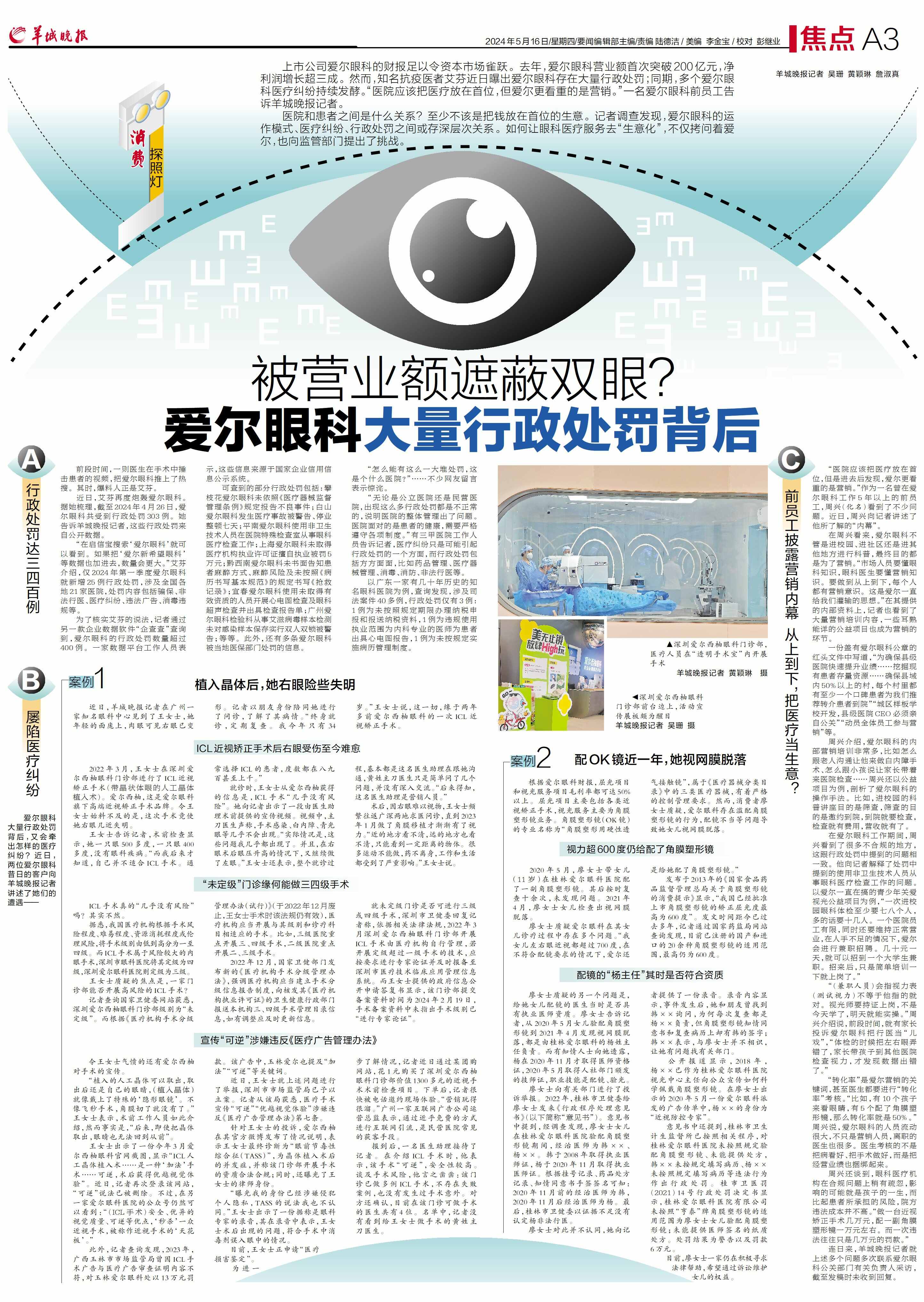 爱尔眼科大量行政处罚背后,又会牵出怎样的医疗纠纷?近日,两位爱尔眼科昔日的客户向羊城晚报记者讲述了她们的遭遇——