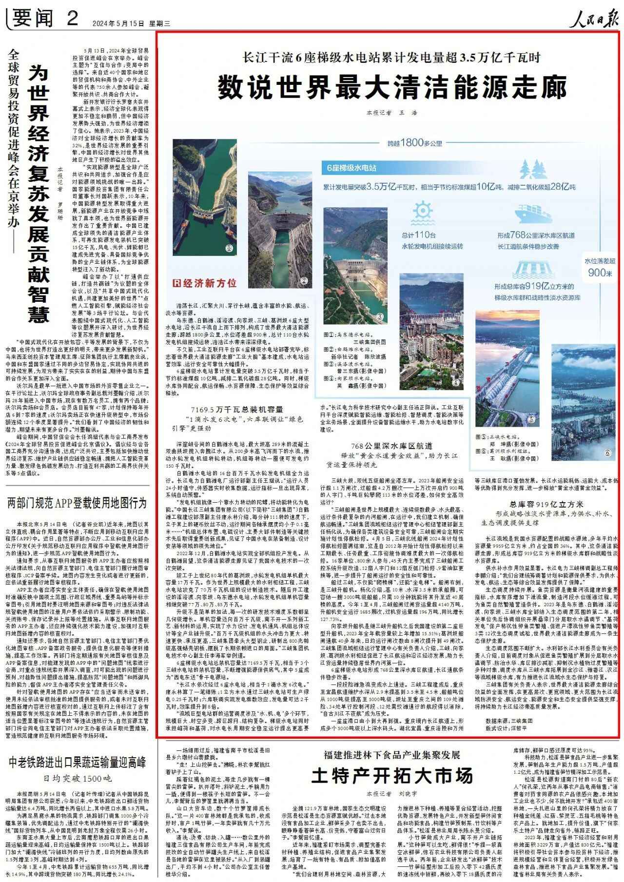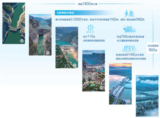 6座梯级水电站形成768公里深水库区航道,长江通航条件稳步改善。