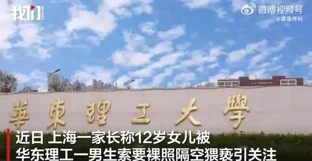 近日,上海一家长称12岁女儿被华东理工一男生索要裸照隔空猥亵引关注。