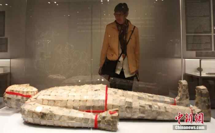 在匈牙利古都塞克什白堡举行的“不朽的玉甲—中国汉代文物精品展”,共展出百余件玉器、漆器、陶器、青铜器、印章、石刻、钱币等汉代文物,将汉代政治经济、社会生活、文化艺术和礼仪信仰逐一呈现。图为当地时间5月7日,一名观众驻足细观徐州博物馆镇馆之宝西汉金缕玉衣。中新社记者 德永健 摄