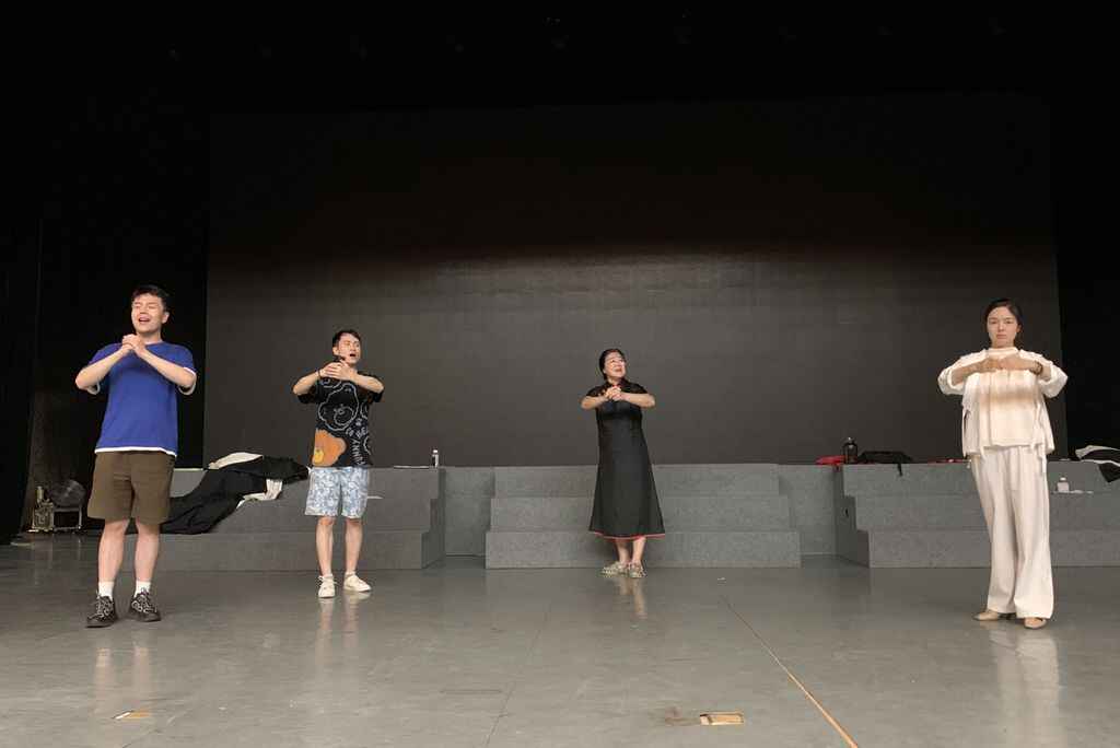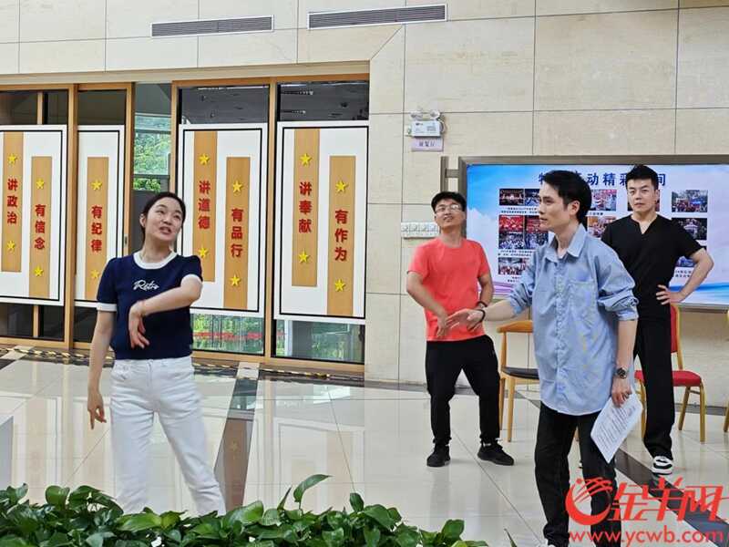 “涂慧,来,咱们再走一遍。”排练场上,一名弯着腰驼着背,身形佝偻像一只虾,一只手拿着台词稿背在腰间,另一只手颤颤巍巍向前指着,行走起来有些踉跄,扮演着老人的年轻人正邀请涂慧再次对戏。他是来自于中央民族歌舞团的黄程瀚,此次受万山红工作室邀请参演《凤舞龙翔》。“时间比较紧,我们要多碰一下戏,大家都刚从全国各地过来广州。”在他的身后,是同样受万山红邀请来到广州演出的中央民族乐团男高音歌唱家桑康、青岛歌舞剧院著名歌剧演员张永林等人。他们的到来不仅让演出团队阵容更加强大,更向现场的青年演员传授了更高水平的专业知识和技能。“四大名著中,我对《红楼梦》会更熟悉些,《三国演义》、《水浒传》了解相对少。通过这次和各位老师的排练,我加深了对这些古典名著的了解。他们对人物的把控,对人物情绪的调度,都值得我们学习。”涂慧表示。