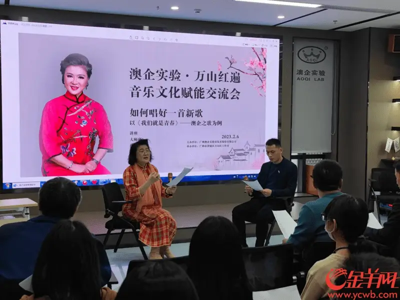 这些跨越不同行业领域的音乐交流会、音乐公益讲座教学等都是万山红近年来在黄埔区举办的一系列音乐活动。让音乐走进企业,是她工作室开展音乐文化活动的一个重要方向。“我们就是青春,始终在挑战新难度……”广州澳企实验室技术股份有限公司便在万山红的指导下,创作了自己的企业之歌《我们就是青春》。“往下叹、往上唱,要这样子唱,注意方式”万山红会根据每个参与企业员工的特点,结合自身的教学实践从歌唱的发声技巧、节奏等要素介绍声乐的特点与方法,并对他们进行一对一的演唱指导,提升他们的歌唱技巧。“我想通过音乐文化丰富广州企业员工的文化生活,赋能企业发展。”万山红希望以音乐破圈的形式,持续点亮群众精神生活,丰富市民的文化体验,为城市发展注入活力。