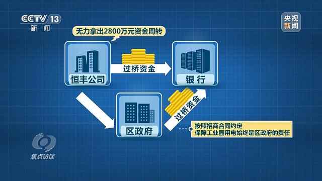而为了解押,恒丰公司需要提供一笔过桥资金给抵押贷款的银行,待土地分割手续办完后,银行再继续发放贷款。这时候,恒丰公司由于长期没有正式生产,无力拿出2800万元资金周转,请区政府协调一笔过桥资金,因为按照招商合同约定,保障工业园用电始终是区政府的责任。
