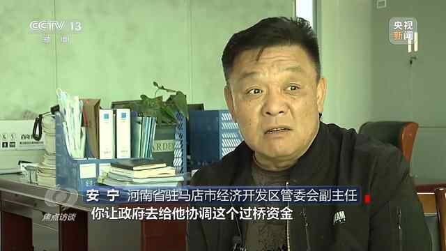 河南省驻马店市经济开发区管委会副主任 安宁:过桥资金2800万,他自己拿不起,你让政府协调过桥资金,政府又为了免于担风险,几经努力,最后这个事没有做成。