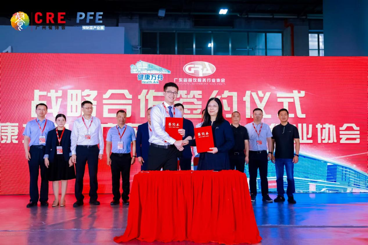 在开幕式签约仪式上,广东省餐饮服务行业协会与健康方舟签订战略协议,合力打造健康方舟餐饮产业航母,“同心共建中国美食之都示范区、携手共建健康方舟食材、酒水、餐饮用品一站式采购中心”。