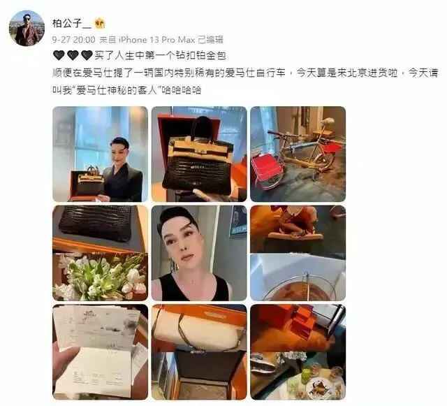 柏公子喜欢展示购买的奢侈品、豪车、名贵服饰。日常穿着名牌服装,驾驶保时捷911。在25岁生日时,为自己定制了一辆劳斯莱斯库里南。乘坐头等舱环游世界,在各国奢侈品门店购物。对爱马仕的喜爱更是到了痴迷的程度。