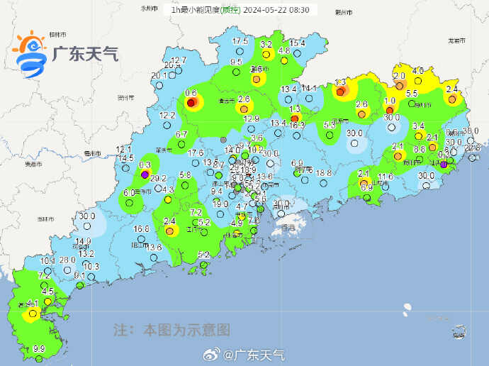 据介绍,5月22日上午,广东德庆、潮阳两个地方的能见度低于300米。截至8时40分,广东恩平、新丰、东源、和平大雾黄色预警生效中,雾时能见度低,以上区域行驶的群众朋友要注意降低车速、控制车距、必要时打开雾灯,以保证驾驶安全。
