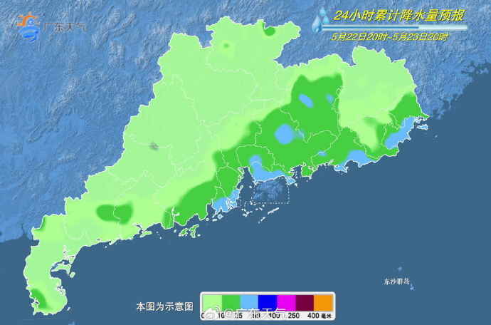 预计,22-24日广东多阵雨天气,局部雨势较大。目前,广东已进入“龙舟水”季节,前期连续强降水造成江河水库水位高、土壤含水量大,引发山洪、泥石流、山体滑坡、崩塌等次生灾害的可能性较大,需做好风险排查和防御准备。