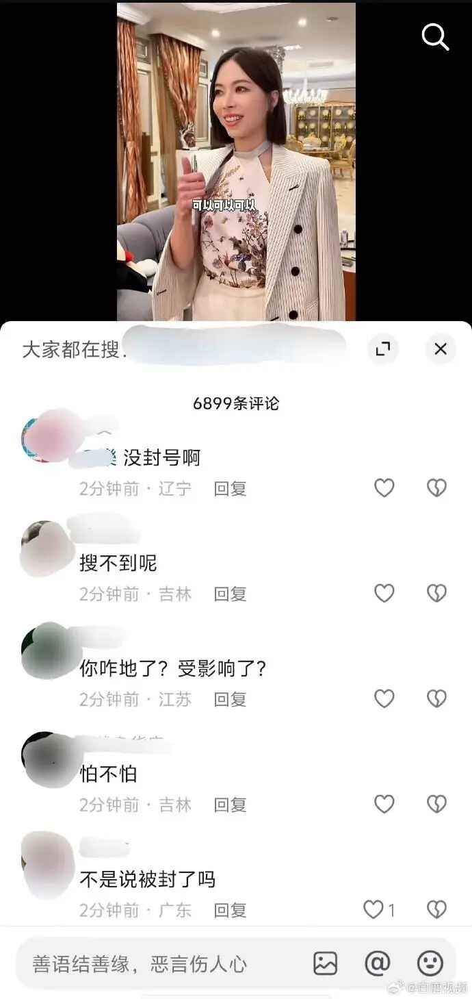 5月22日下午,记者查询发现,田田小阿姨的抖音账号无法直接通过名称搜索到,但其账号并未被封禁。网友在评论区疑问“为什么搜不到?是不是受影响了?”