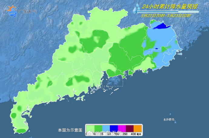 23-24日,南部沿海市县阴天间多云,有中到大雨局部(大)暴雨,其余市县多云间阴天,有阵雨局部大雨。广东大部市县最高气温介于26℃~30℃之间。