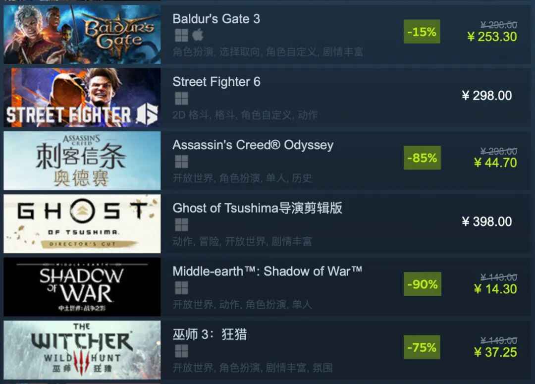近十年间,海外3A大作以相对低的价格进入中国市场,迅速占据了大量用户心智。其中部分游戏给出诱人的折扣,构建了极其惊人的价格锚点——说的就是你,动辄打骨折到几十元的《巫师3:狂猎》们。