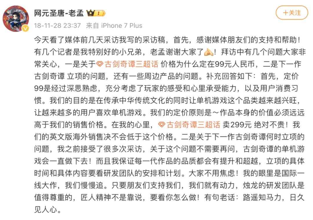 与同时期的海外单机游戏相比,《古剑奇谭3》或许还不足以媲美顶级3A大作,但从内容体量、玩家反馈来看,其与60美元定价带主流作品的质量差距,远远没有价格差距看上去那么大。退一步来讲,它至少不应当落点在99元——一个同海外独立游戏相去不远的价位。