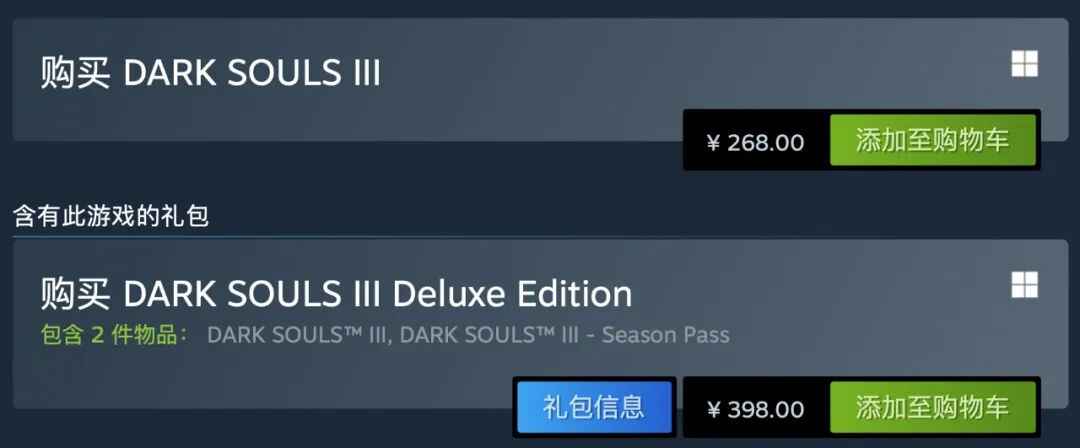 根据Steam商店页信息,《黑暗之魂3》本体的国区定价为268元,与《黑神话:悟空》完全一致。同样选择了这一数字的热门动作游戏,还有把“危”字带火的《只狼:影逝二度》,其国区定价同样是268元。