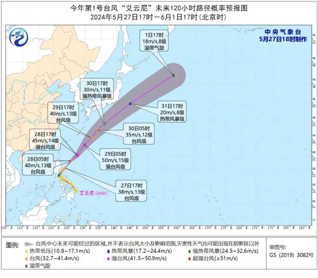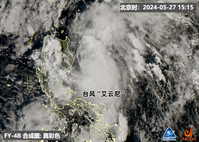 5月27日17时左右,“艾云尼”已加强为台风级(13级,38米/秒),其位于菲律宾以东洋面上。从云图来看,“艾云尼”个头不大,但十分紧凑。