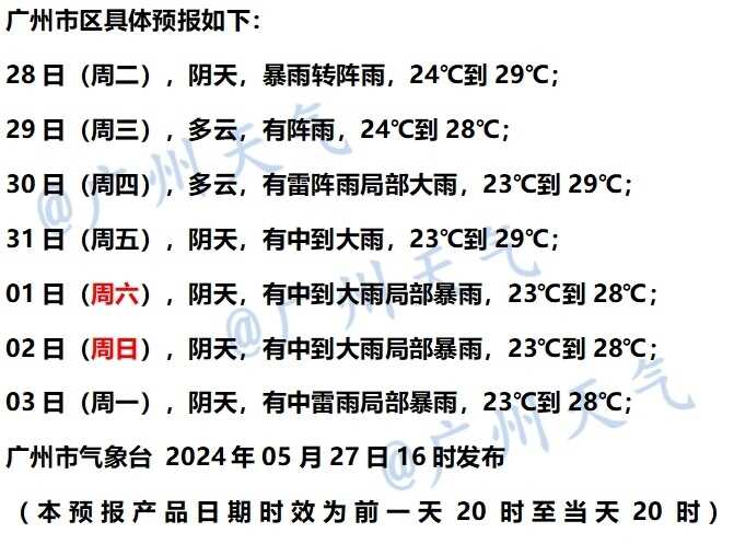 28日,珠江三角洲中南部和粤西的北部市县有暴雨局部大暴雨,其余市县有大雨局部暴雨。