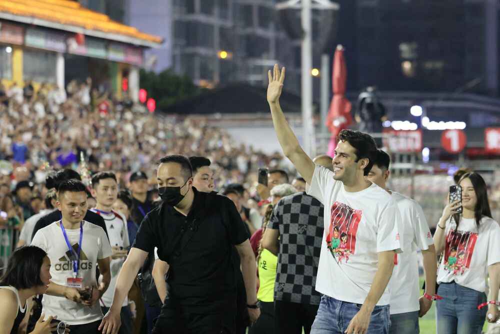“他来了,他来了!”27日晚,在贵州省黔东南苗族侗族自治州榕江县的贵州“村超”足球场内,当巴西足坛名宿卡卡面带微笑从球员通道现身,现场翘首以盼的大批球迷和游客发出阵阵欢呼声。