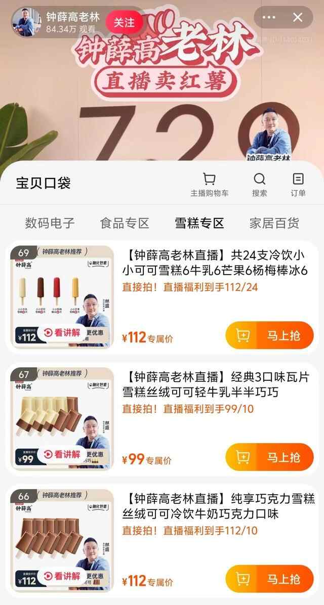 该场直播有84.28万的观看量,带货情况如何?钟薛高落寞后,雪糕市场又有什么新变化?