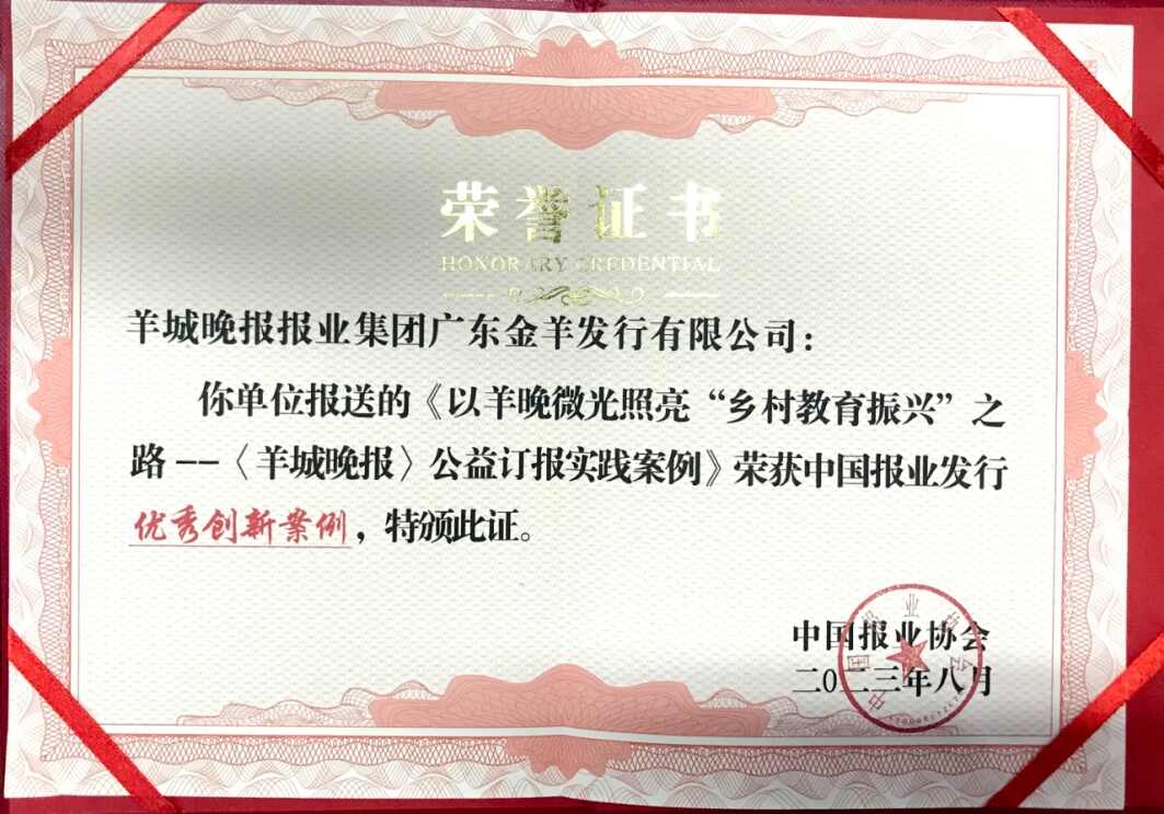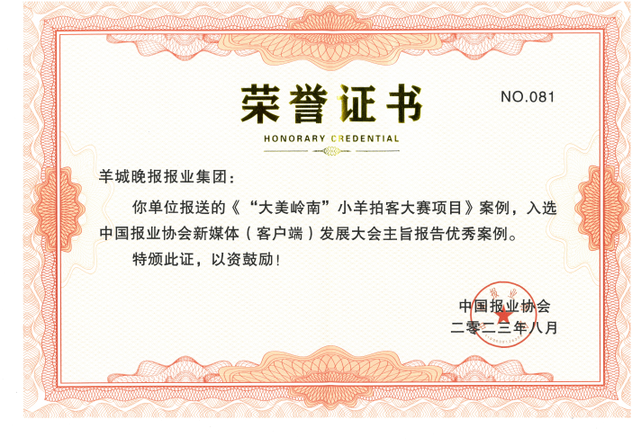 2023年,羊城晚报6件作品获2022年度赵超构新闻奖,1人获第十五届广东新闻金梭奖,27件作品获2022年度广东新闻奖。在2023年度全省新闻战线“走基层、转作风、改文风”活动评选中,获得5个奖项。羊城晚报“1+2+3+N”立体移动传播链项目,入选第三届中国报业深度融合发展创新案例。“‘大美岭南’小羊拍客大赛项目”入选中国报业协会新媒体(客户端)发展大会主旨报告优秀案例。《羊晚数藏平台》案例入选中国报业协会首届报业传媒元宇宙应用大会“元宇宙技术创新应用案例征集活动”重点案例。《以羊晚微光照亮“乡村教育振兴”之路——〈羊城晚报〉公益订报实践案例》获评中国报业发行优秀创新案例。