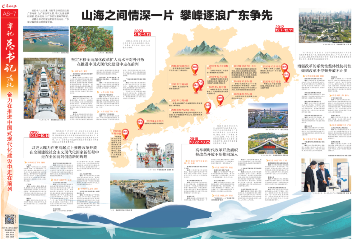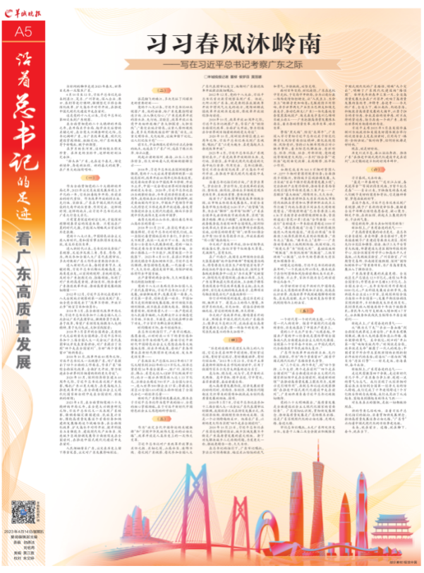 2023年,羊城晚报重大主题报道浓墨重彩,全平台开好“学习贯彻习近平新时代中国特色社会主义思想主题教育”专题、“学思想、强党性、重实践、建新功”专栏,权威阐释“读懂主题教育”,聚焦“南粤学习进行时”“青年学者深调研”等。有关学习宣传贯彻党的二十大精神报道浏览量超过2亿、学习宣传贯彻全国两会精神报道浏览量超过1.1亿。2023年4月,习近平总书记再次视察广东,羊城晚报推出16个整版特别报道,推出八千字宏论《习习春风沐岭南》,以及手绘跨版作品《山海之间情深一片 攀峰逐浪广东争先》,充分反映广东牢记嘱托、感恩奋进、勇毅前行的历程和成就。这一系列主题报道全网浏览量超过1.5亿。