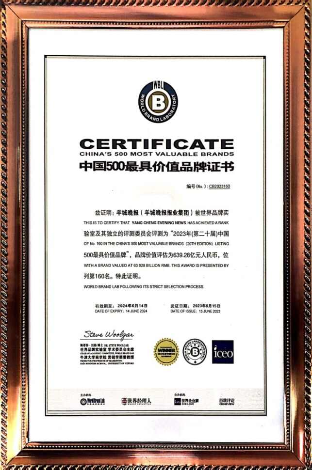 近年来,羊城晚报报业集团推进“羊城晚报”“羊城创意产业园”双品牌双平台深度融合发展战略,促进品牌传播与品牌效应的裂变。羊城晚报已经从一张报纸,变成一个立体传播、全媒体发展的文化平台;羊城创意产业园也从一个园区发展到“一园七区”的稳健体系,成为具有强大聚合力的文化创意产业园品牌。2023年,羊城晚报品牌价值持续提升,在世界品牌实验室发布的2023年《中国500最具价值品牌》分析报告中,羊城晚报品牌价值增至639.28亿元,持续领跑全国晚报。