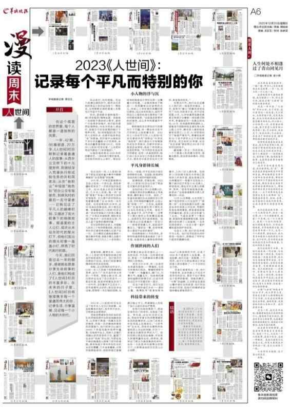 羊城晚报高度关注人文领域热点话题,把人民作为报道主体,注重人的精神世界,凸显人文精神,做有态度、有温度的新闻报道。2023年,羊城晚报专辟《人世间》栏目,全年共推出42期,合计66篇报道、20余万字,把老百姓的喜怒哀乐倾注于笔触,温情展示平凡人、普通人的命运悲欢,倡导向上的力量,沁润心灵的家园。