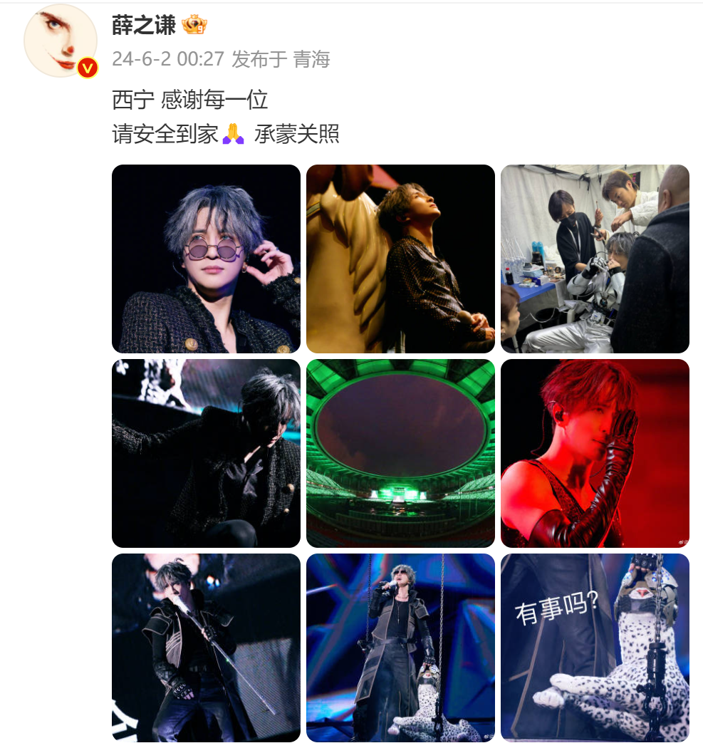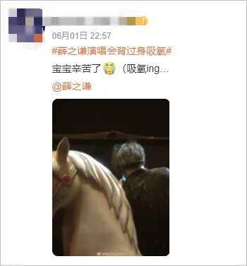 不仅如此,2日凌晨,薛之谦发文:“西宁 感谢每一位,请安全到家🙏 承蒙关照”,其中晒出的图片也有在后台准备时疑似吸氧的照片。