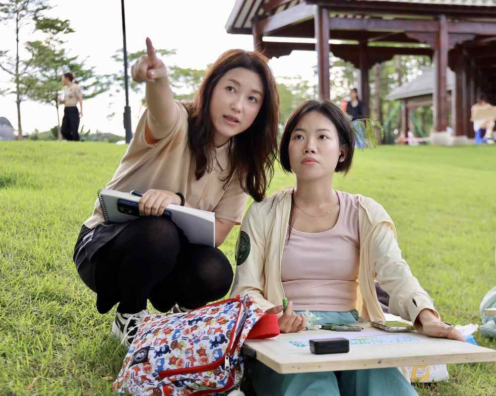 在汲取湿地生态理论知识的同时,同学们捕捉自己最喜欢的大沙河湿地景色,并将其作为写生绘画的素材。