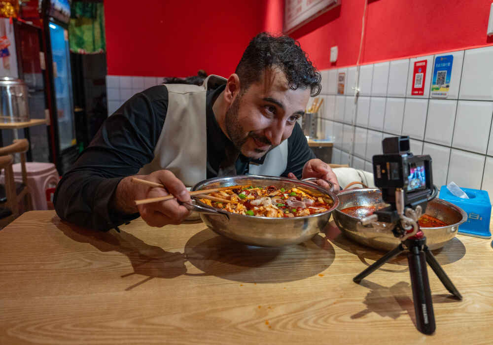 在不到半年的时间里,王立轩的粉丝量从几万暴涨到1500多万。网友们通过他的镜头,能够足不出户就领略到中国各地的特色美食,网友亲切地给他取了谐音名“往里炫”。“老王在中国”的视频,既有外国人视角的独特点评,也有和餐厅老板、食客们的亲切互动,让每一期视频都充满了笑声与温情。