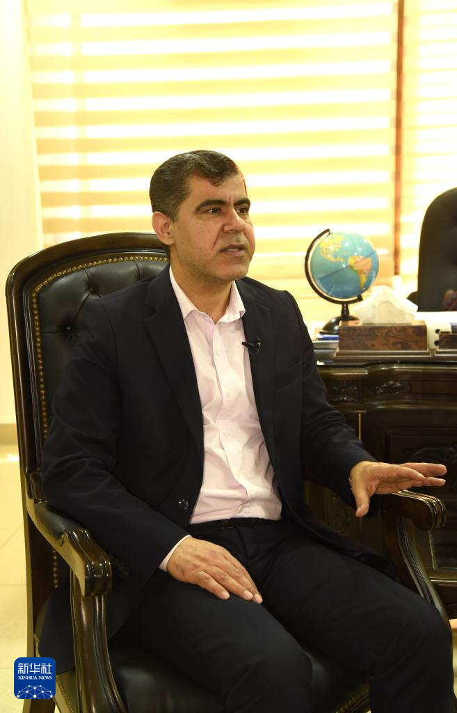 5月27日,在叙利亚首都大马士革,叙石油和矿产资源部副部长费尔哈特·阿卜杜拉接受新华社记者专访。新华社发(蒙塞夫·梅马里摄)