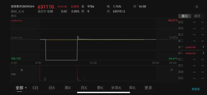 周一开盘,美股遭遇多股异动,40余只股票集体瞬间暴跌近100%。其中,股神巴菲特旗下的伯克希尔公司A类股从每股62万美元的高价跳至185.1美元,巴里克黄金、纽斯卡尔动力公司等股票一度掉至不到1美元/股的“白菜价”。