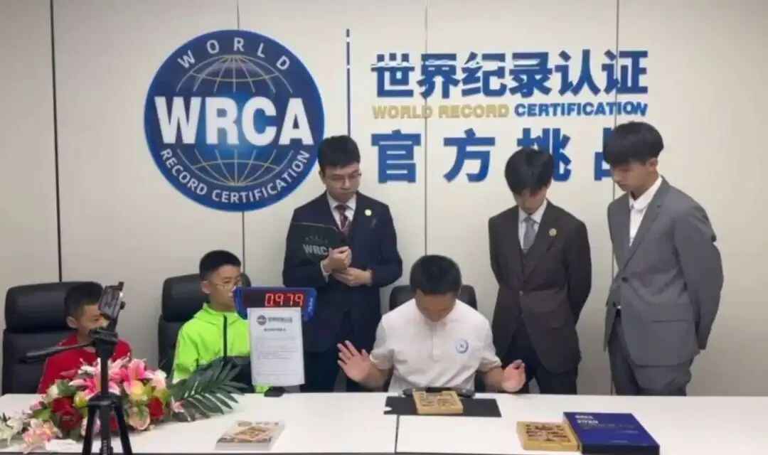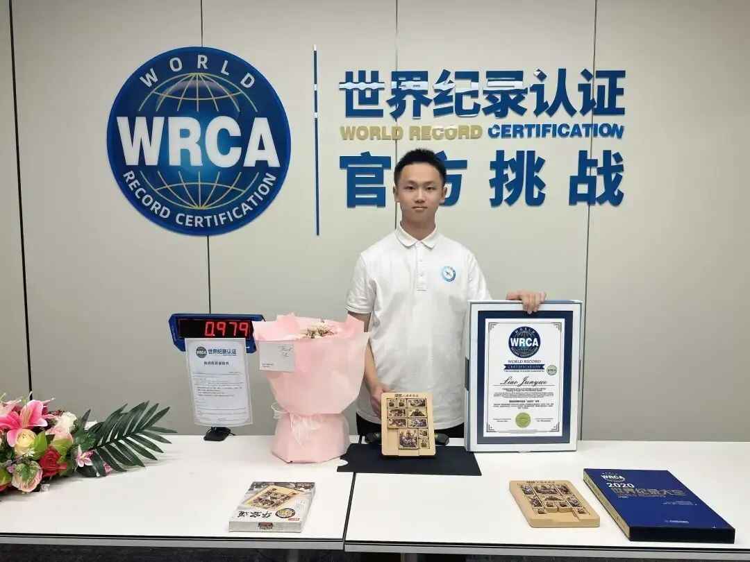 据介绍,华容道是一项源自中国四大名著《三国演义》的经典智力游戏,玩家需要通过移动棋子,将目标从初始位置移到棋盘最下方中部。“过五关”的布局一共是48个步骤,对廖俊越来说,他需要在1秒内完成拍表、走完所有步骤之后再停表。