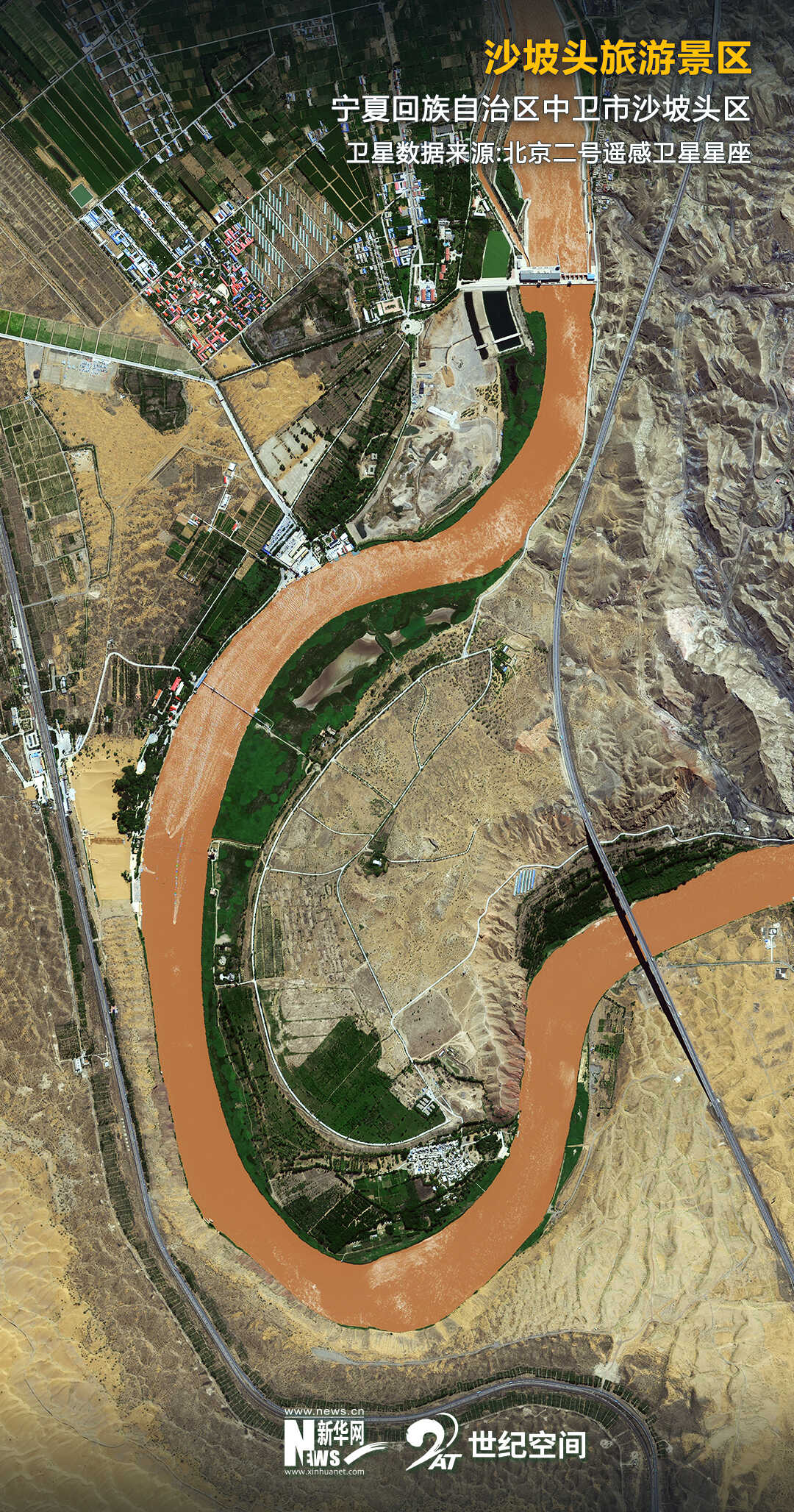 如今,在当地有关部门开展的水系疏浚工程影响下,这里成为沙漠湿地的聚集地。黄河流经此地,画出了一道蜿蜒的曲线。河的一头是腾格里沙漠的无垠瀚海,另一头被一抹苍翠镶嵌在河岸边。