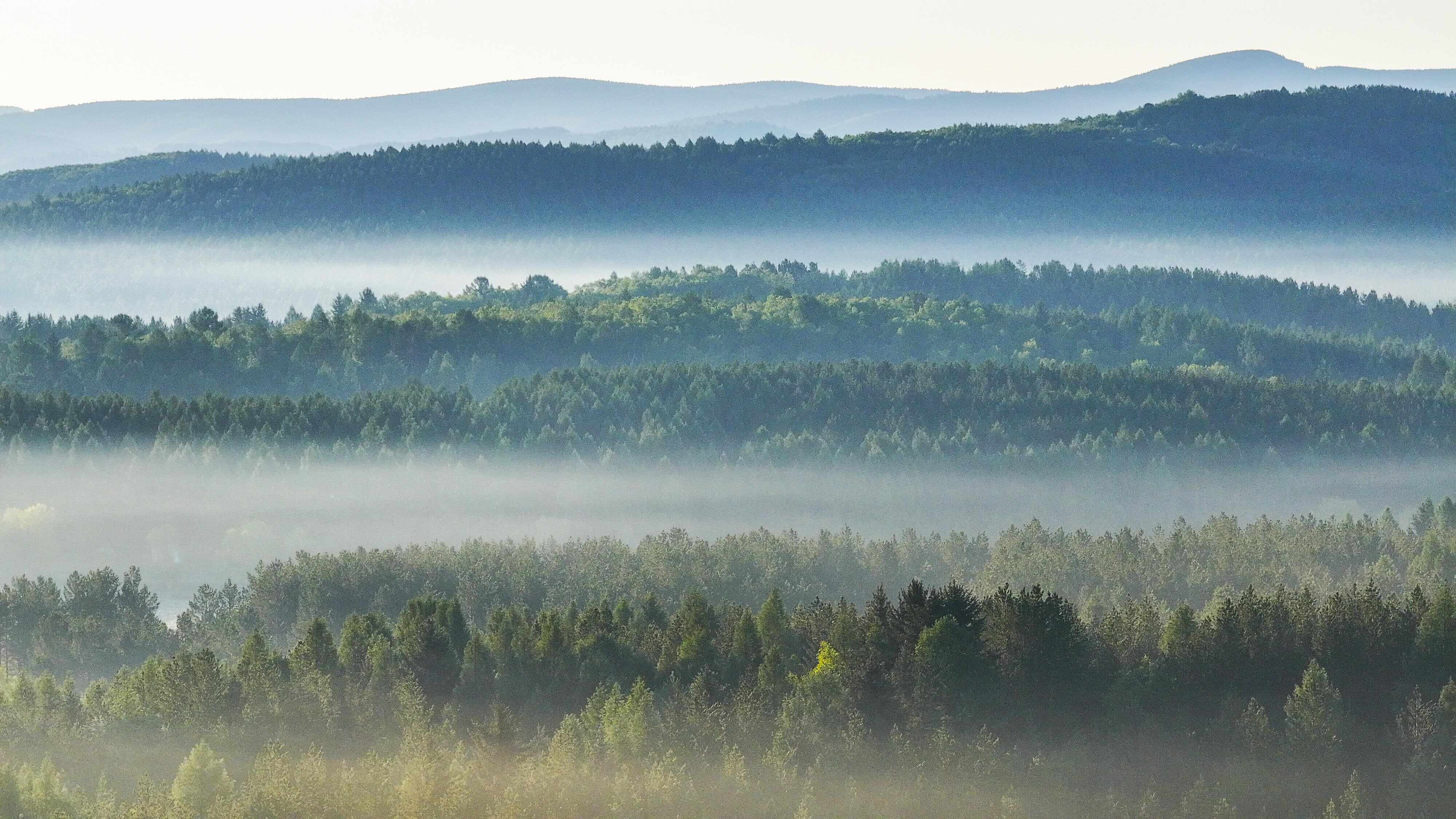 2024年6月1日拍摄的河北塞罕坝国家森林公园晨景(无人机照片)。新华社发(刘满仓 摄)