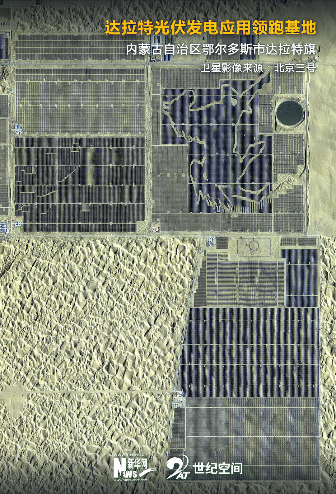 在被称为“死亡之海”的库布其沙漠,有一座4万多亩的光伏发电基地。基地中,一匹由19.6万块光伏板拼成的“骏马”成为当地的新地标。光伏板不仅是固沙的一道防线,还能遮挡一定的阳光照射,减少下面土壤的水分蒸发,为板下的植物的生长提供了有利条件。