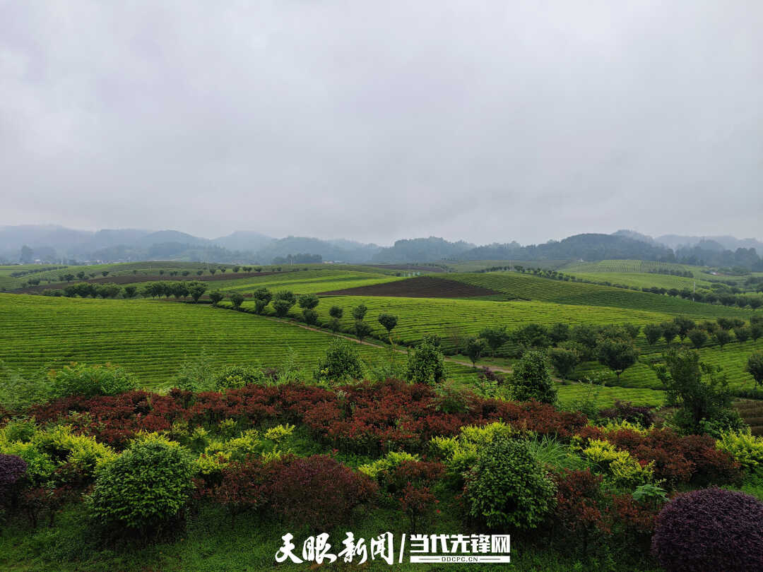 位于遵义市湄潭县永兴镇的这片万亩茶海,是世界上面积最大的茶海,连片茶园近4.3万亩。“我在台湾看到的茶海,样子是梯田形状,当看到这里一望无际的茶海,真的忍不住‘哇’出声来。”何橞瑢笑言:“刚好今天飘着细雨,感觉特别浪漫。”