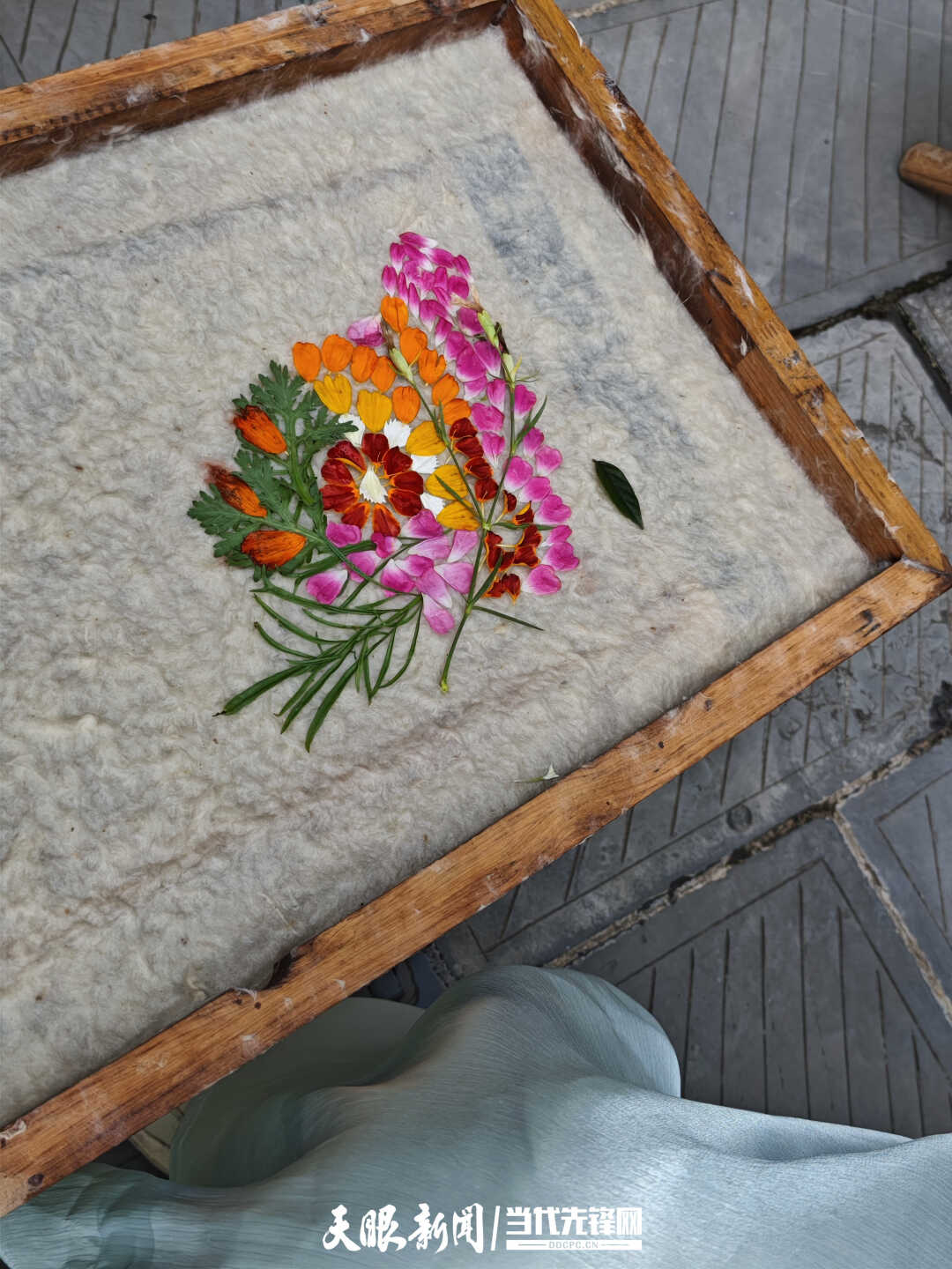 两岸青年体验古法造纸纸浆压花技艺