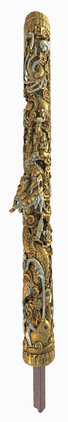 番禺神楼雕“鱼跃龙门”龙柱正面 现藏于广东民间工艺博物馆