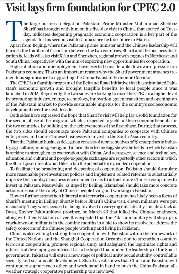 原文标题:Visit lays firm foundation for CPEC 2.0