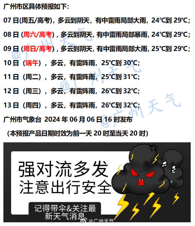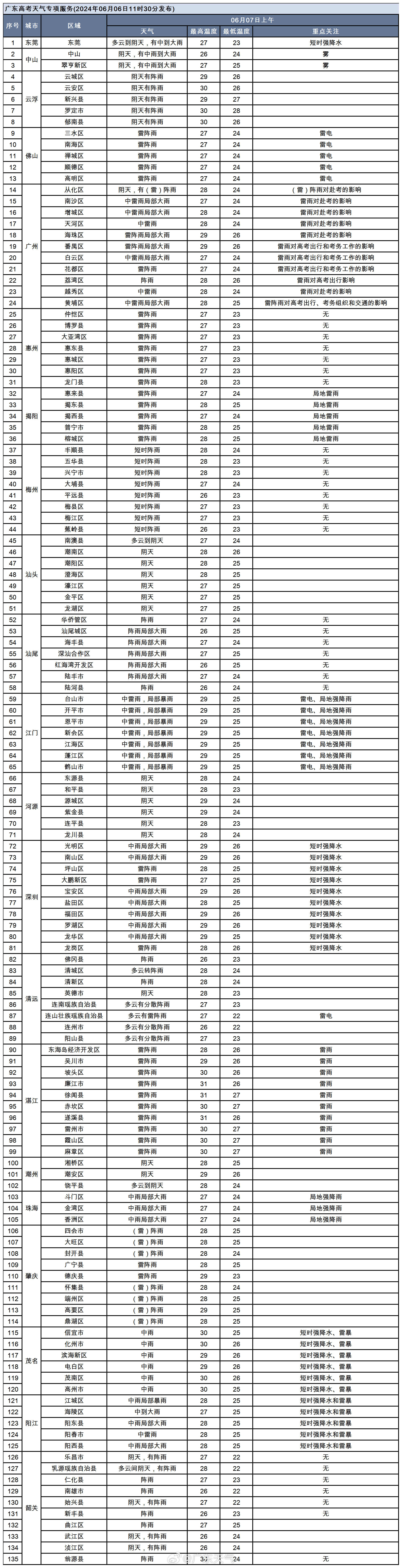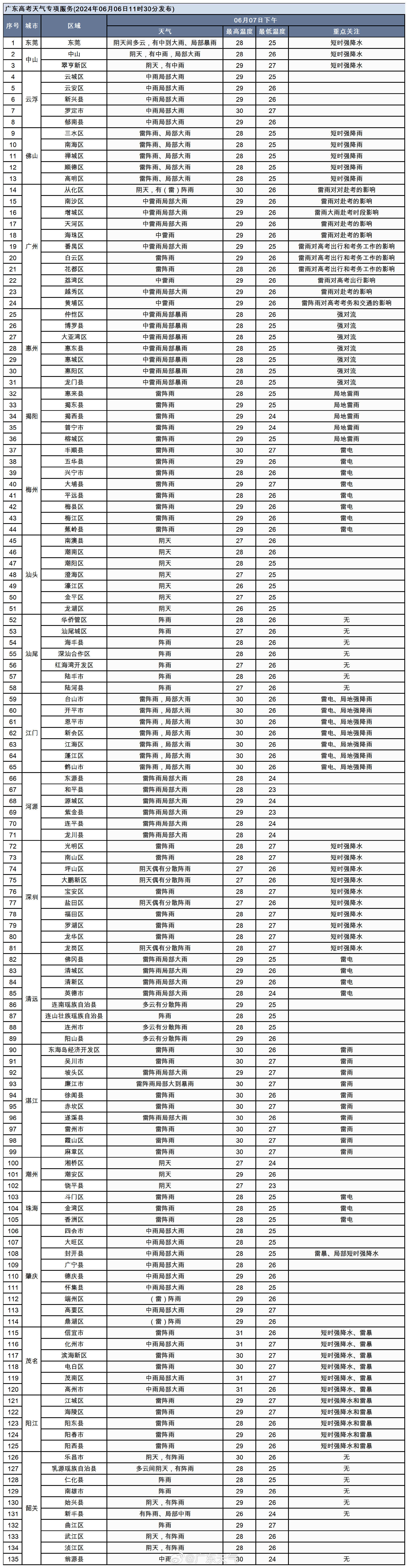 2024年广东高考首日不同地区天气预报如下(6月6日11时30分发布),请查收!