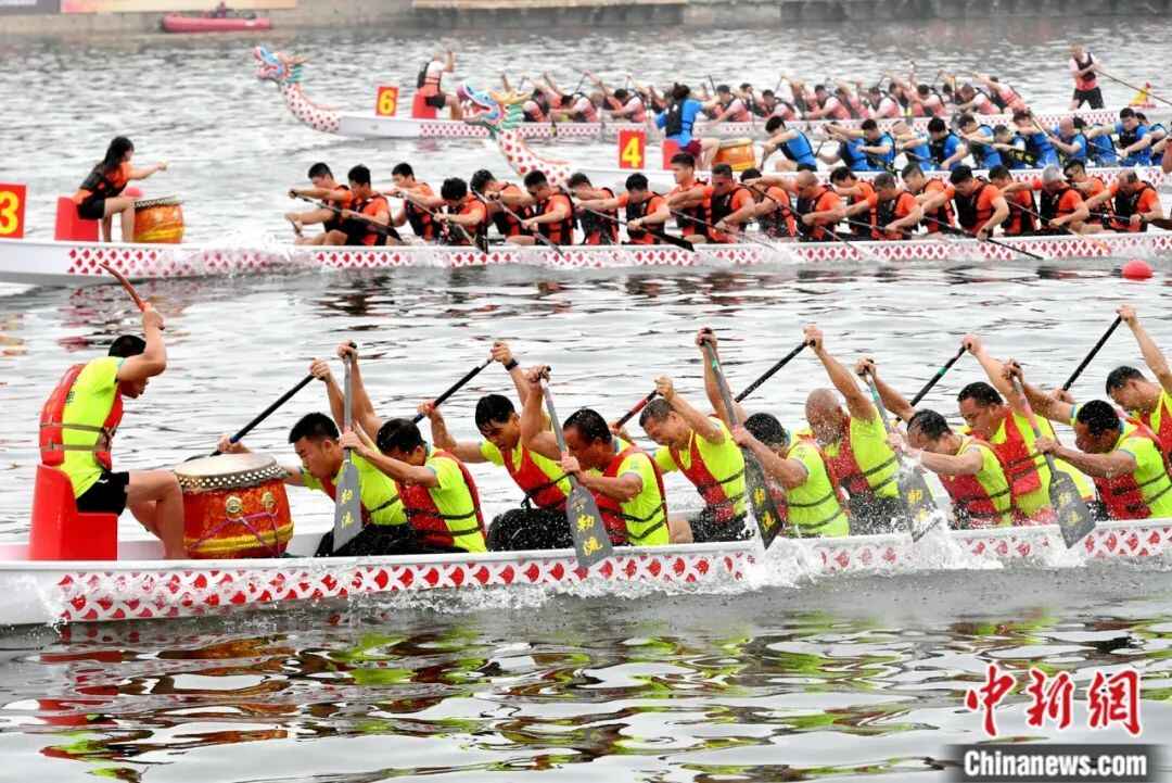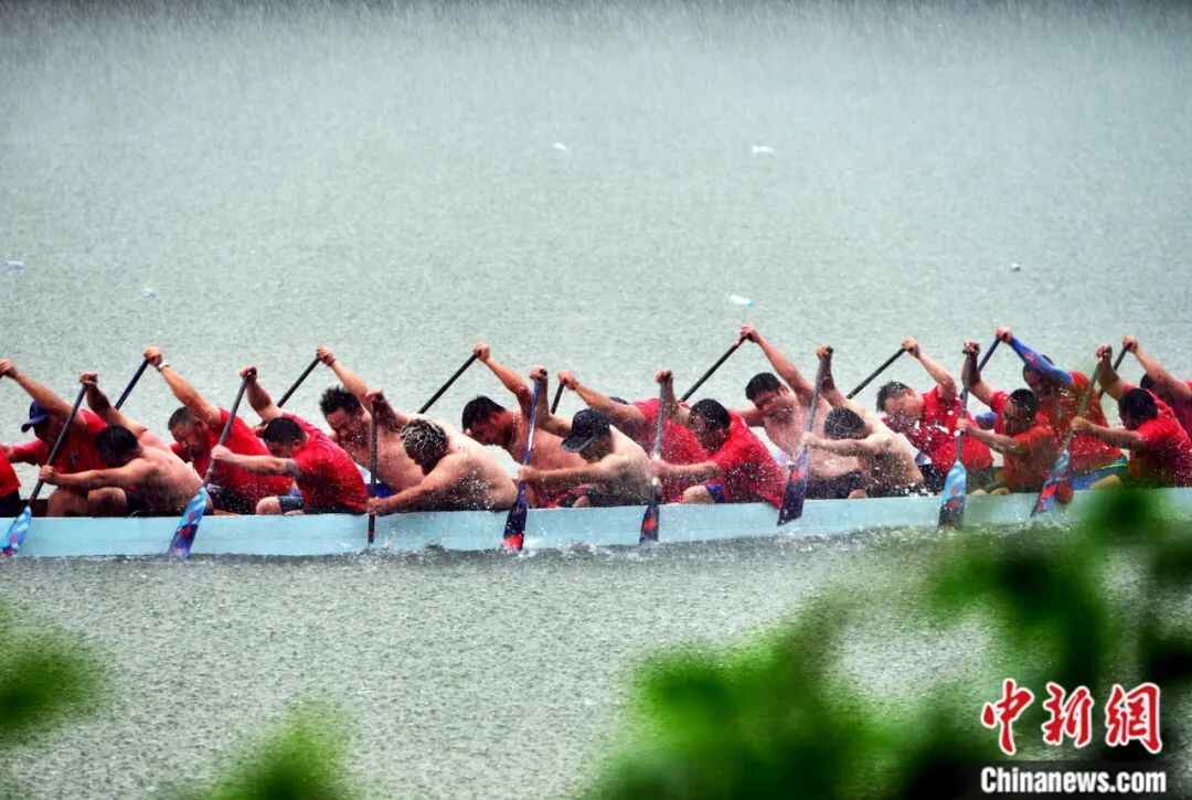 在厦门,端午节期间举办多场龙舟赛事。选手们你争我夺,奋力划桨,给市民带来了一场场视觉盛宴。中新社记者 王东明 摄