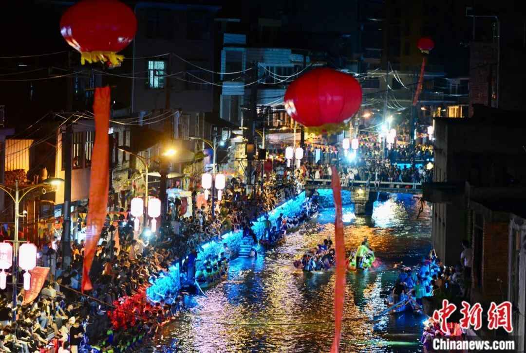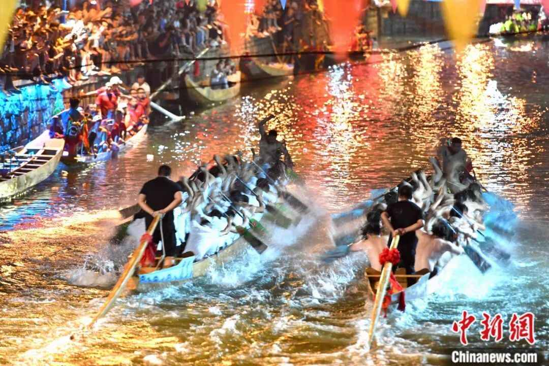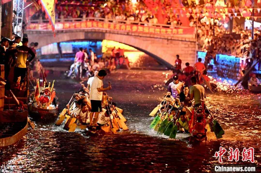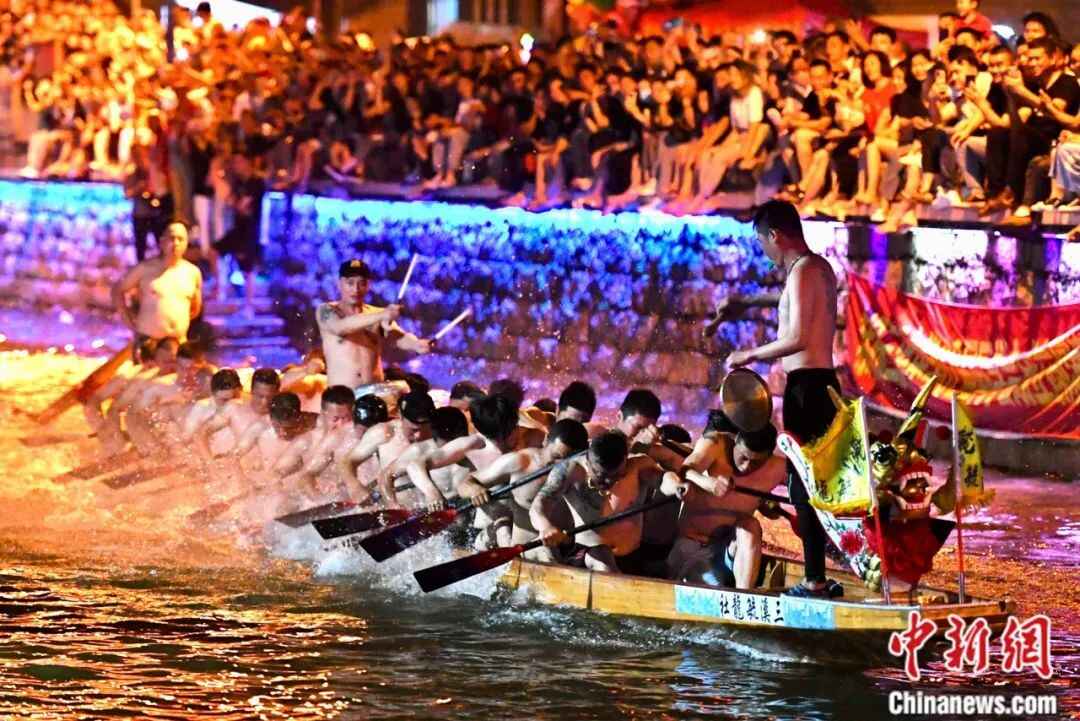 在福建著名侨乡长乐境内的三溪村里,夜赛龙舟是全国独有的端午习俗,已经沿袭600多年。每年端午节前后,当地村中男女以划龙舟、赛龙舟为乐,并借此祈盼风调雨顺,平安健康。中新社记者 吴晟炜