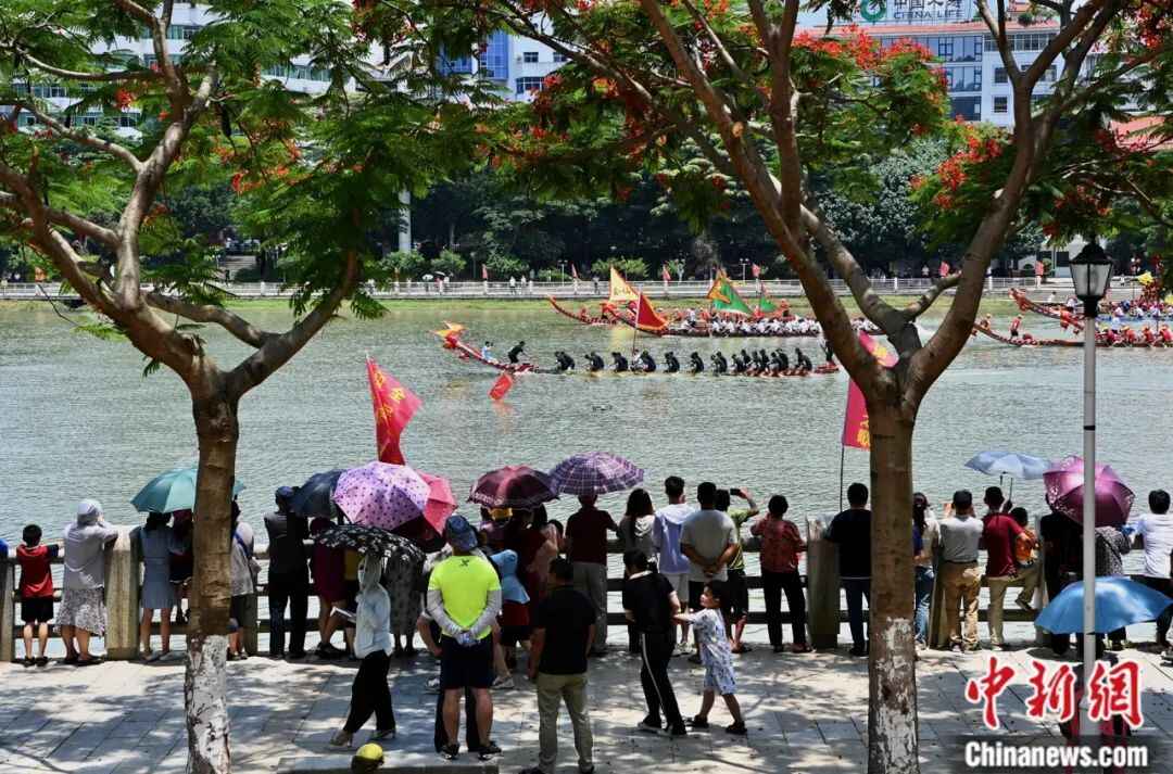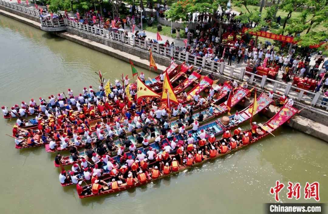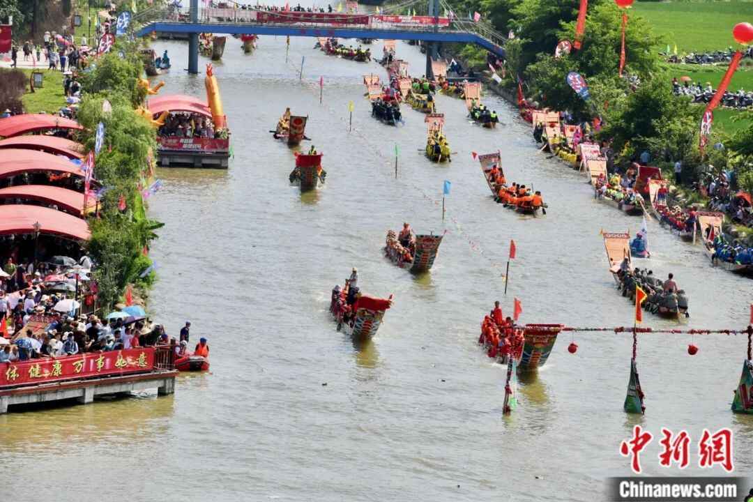 数十艘龙舟在溪面上来回穿梭。中新社记者 王东明 摄
