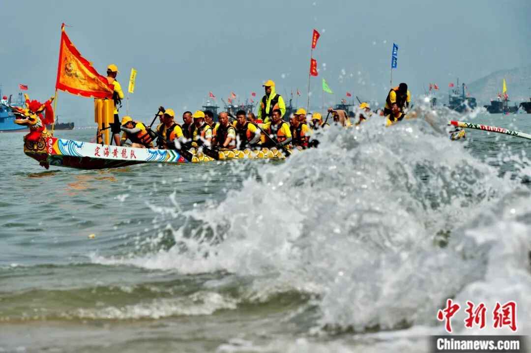 海峡两岸龙舟赛上,选手们乘风逐浪、奋勇争先。中新社记者 吕明 摄