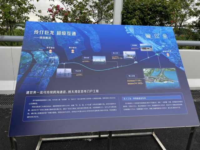 这是一个集桥、岛、隧、水下互通于一体的世界级跨海集群工程,北距虎门大桥约30公里,南距港珠澳大桥约31公里,是环珠江口100公里“黄金内湾”A字形交通网络骨架的关键一横。