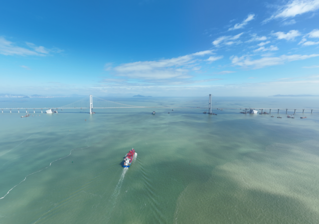 烟波浩渺的伶仃洋面,深中大桥如蛟龙跃海。