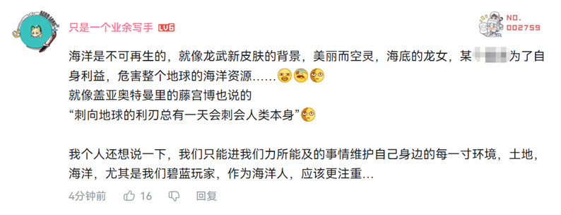 数据上,瑚礁保护宣传PV发布不到两天,单B站播放量就已接近200万,用户参与方面,评论区大量玩家在畅谈对海洋保护的理解,还有玩家晒出自己养的珊瑚。