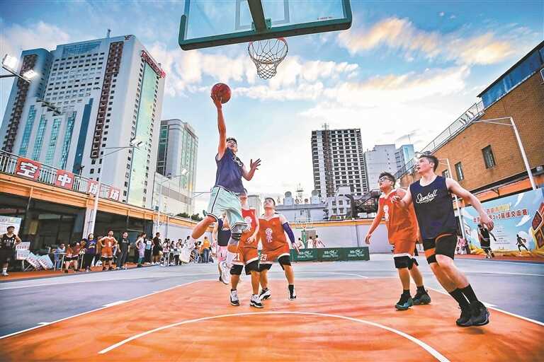 繁华闹市区照样有群众体育的舞台。广州日报新花城记者 骆昌威 摄