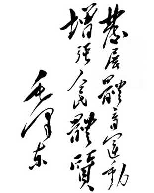1952年6月10日,毛泽东同志为新中国体育工作题写了“发展体育运动,增强人民体质”12个大字。题词明确了新中国体育事业的根本目的和发展方向,推动了我国体育运动的发展。