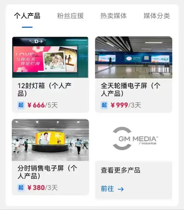 据了解,地铁广告具体分为个人产品、粉丝应援、热卖媒体、媒体分类等4种可供投放的分类选择,之后根据灯箱、站厅包柱、主题站厅等广告位置以及具体投放时间细分具体价位。